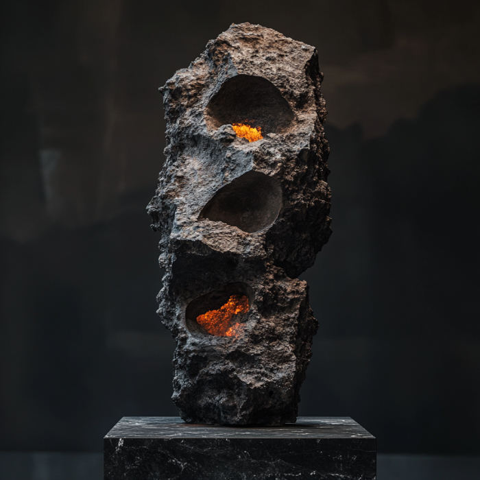 Let’s start with Stone no. I. It’s broad, grounded, but wounded to its core. The stone is pockmarked with hollows, each cradling a flicker of amber glow. The texture is volcanic, like it was born in an eruption of rage and sorrow. I thought of the Ukrainian people, their faces on the news—mothers clutching children, soldiers with eyes like stone. Brancusi has carved their resilience into this rock, but also their loss. The glow in those hollows isn’t just light; it’s the memory of what’s been taken, the lives snuffed out by Putin’s war machine. I wanted to touch it, to feel the heat, but I didn’t dare. Some things are too sacred for a man’s hands.