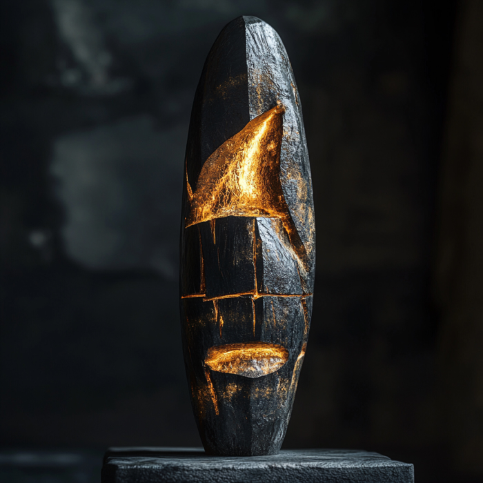 His Bird in Space or The Kiss showed us form boiled down to its essence, a purity that made you believe in the soul of matter. But here, with Ukraine’s fields soaked in blood and cinders, he’s not after purity. He’s after something raw, something that reeks of gunpowder and grief. These stones—each a scarred, towering shard with a molten amber core—look like they’ve been ripped from the earth’s gut, like they’ve seen the worst of us and still won’t break.
