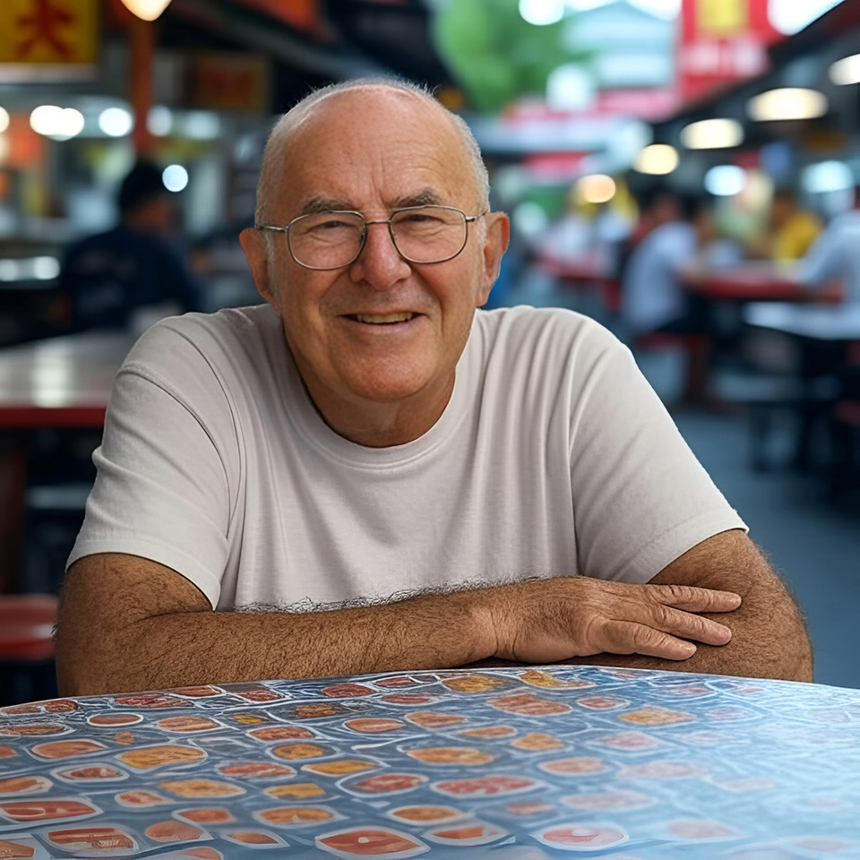 Clive James - who did not write this post - enjoying the laksa at a hawker centre.