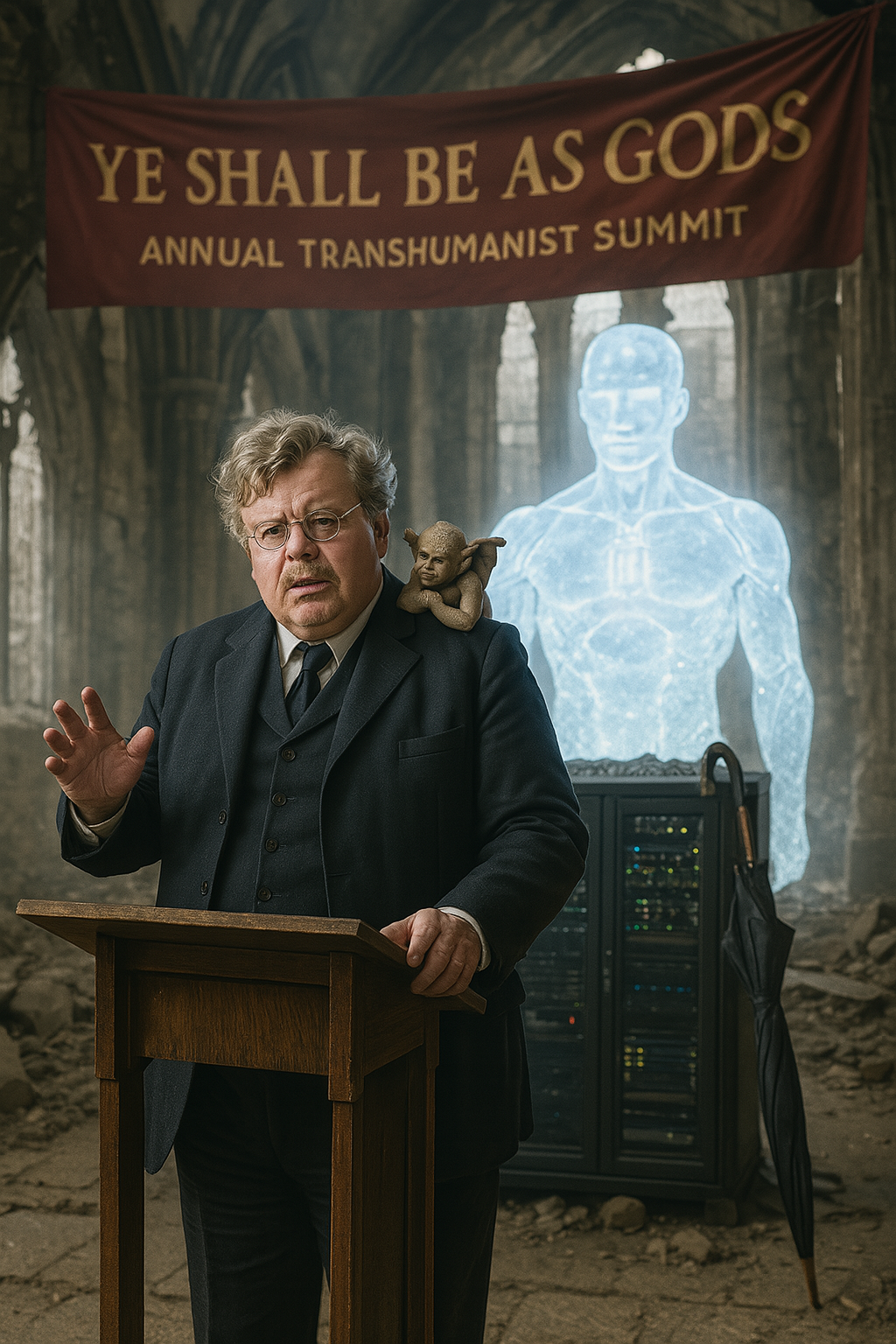 G.K. Chesterton is a British journalist, theologian, and amateur detective sidekick. When not arguing with ghosts or composing hymns on napkins, he enjoys pipe smoke, paradox, and mocking the gods of progress with nothing but common sense and a secondhand umbrella.