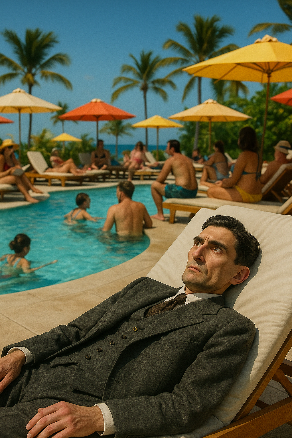 Franz Kafka is a former insurance clerk and part-time insect who once attempted a beach holiday but got trapped in a deckchair for three days. Though largely unfamiliar with leisure, he has strong opinions about luggage tags, hotel keycards, and the existential menace of continental breakfast. He is currently working on a novella about a passport control officer who interrogates souls at the border of the afterlife. Kafka lives nowhere, and often.